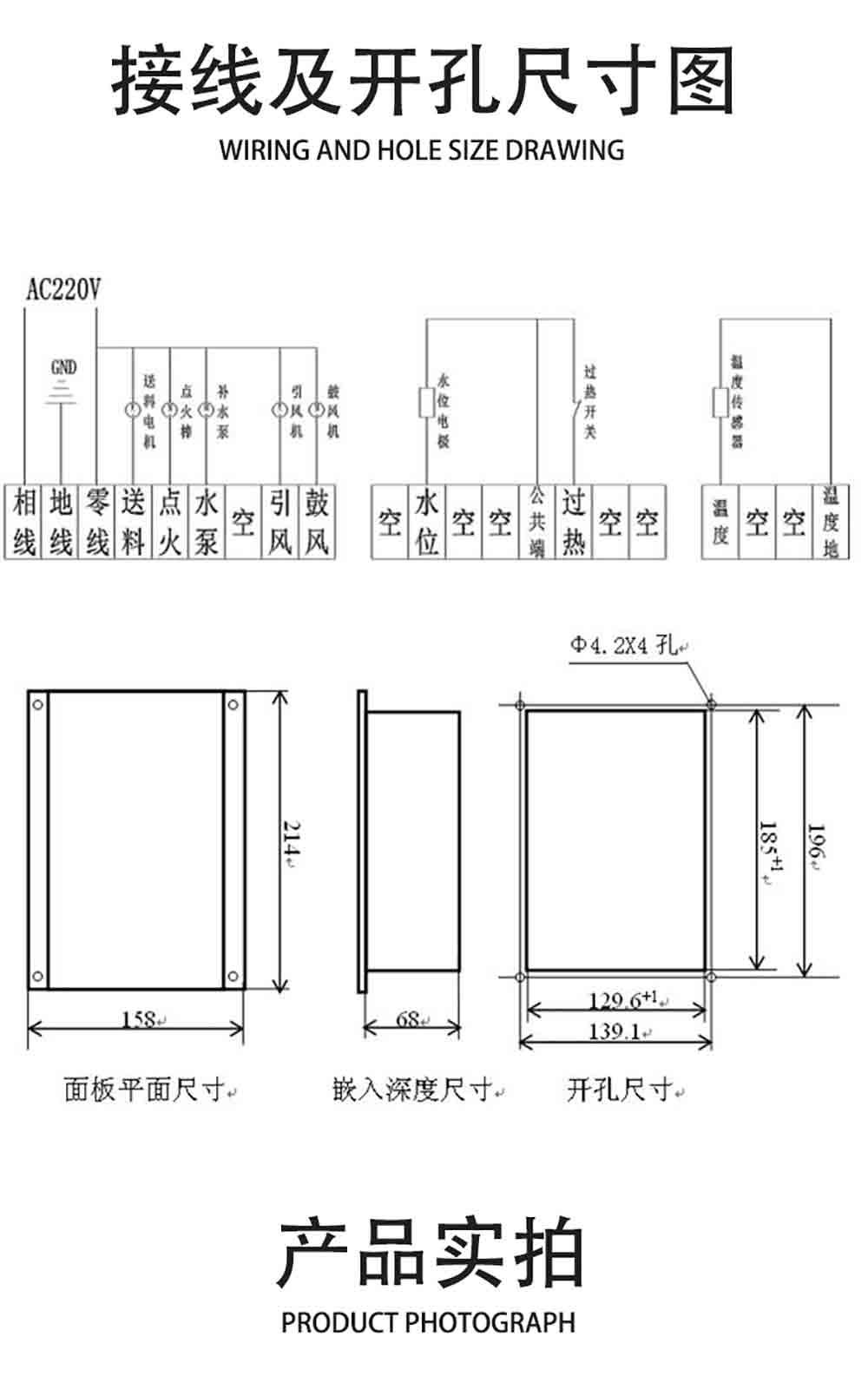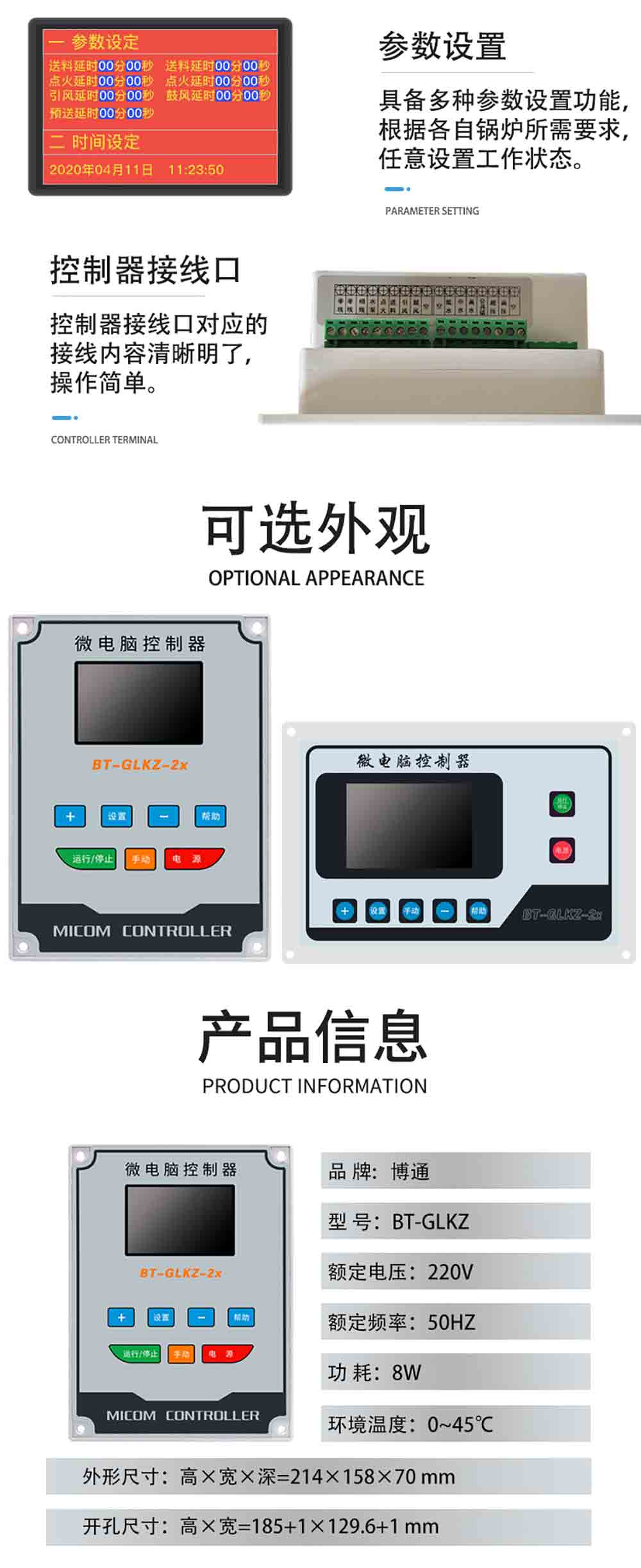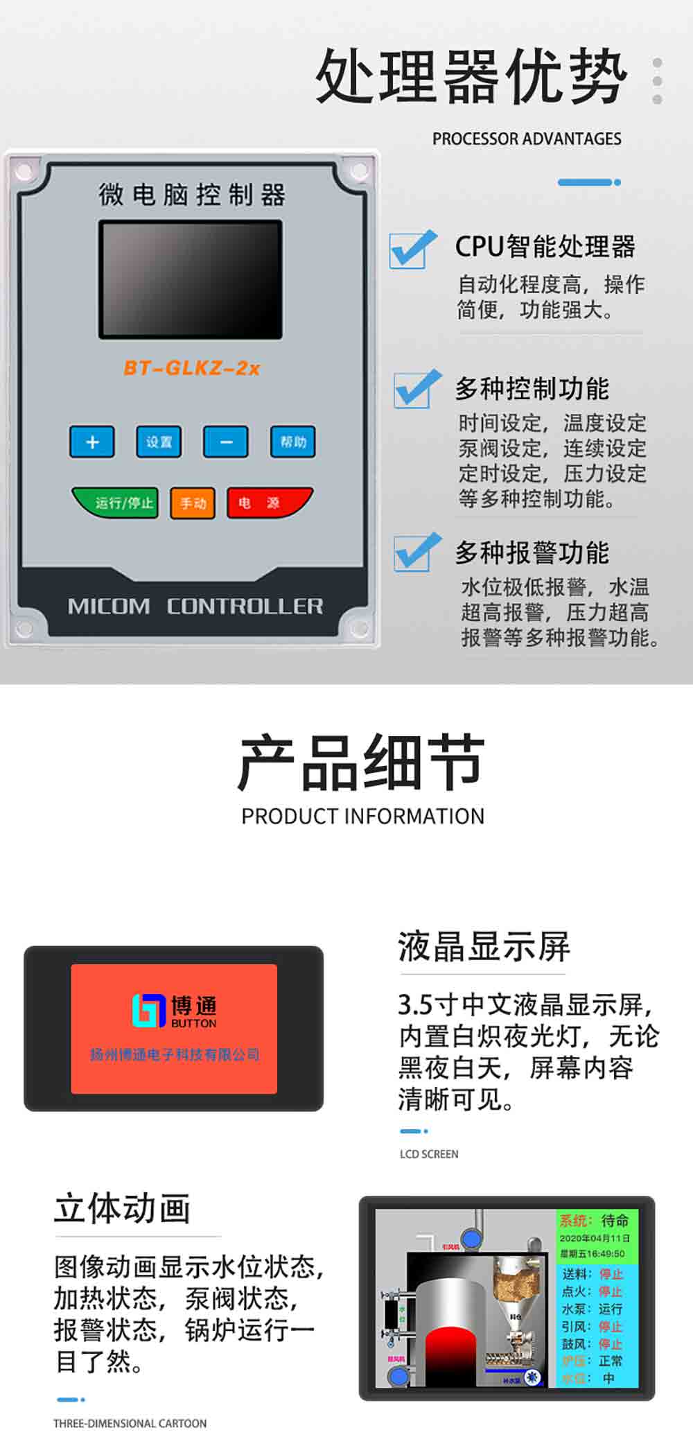 商品名称:3.5寸LCD生物质热水锅炉控制器竖版