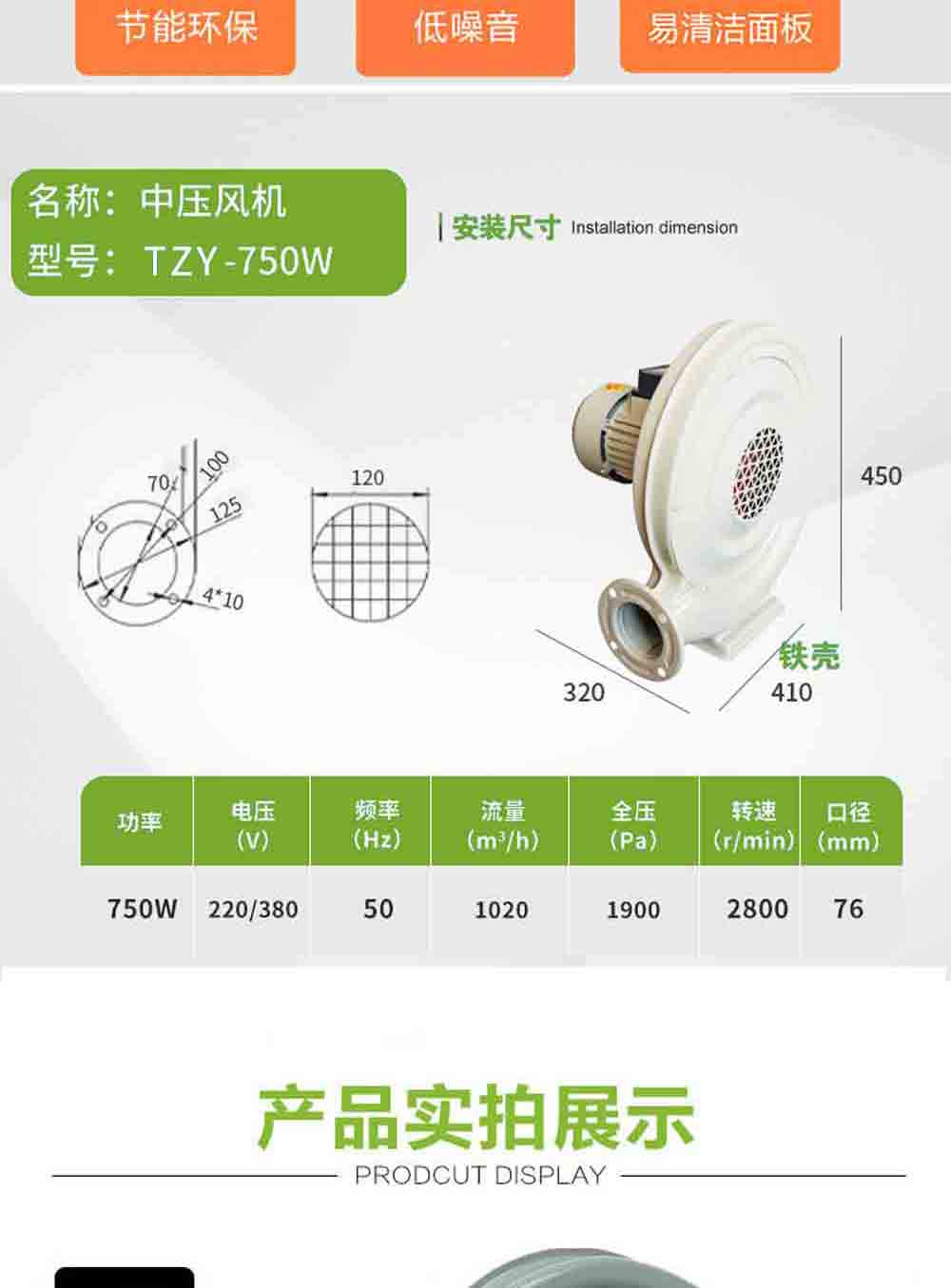 商品名称:银牛中压风机 750W/220V