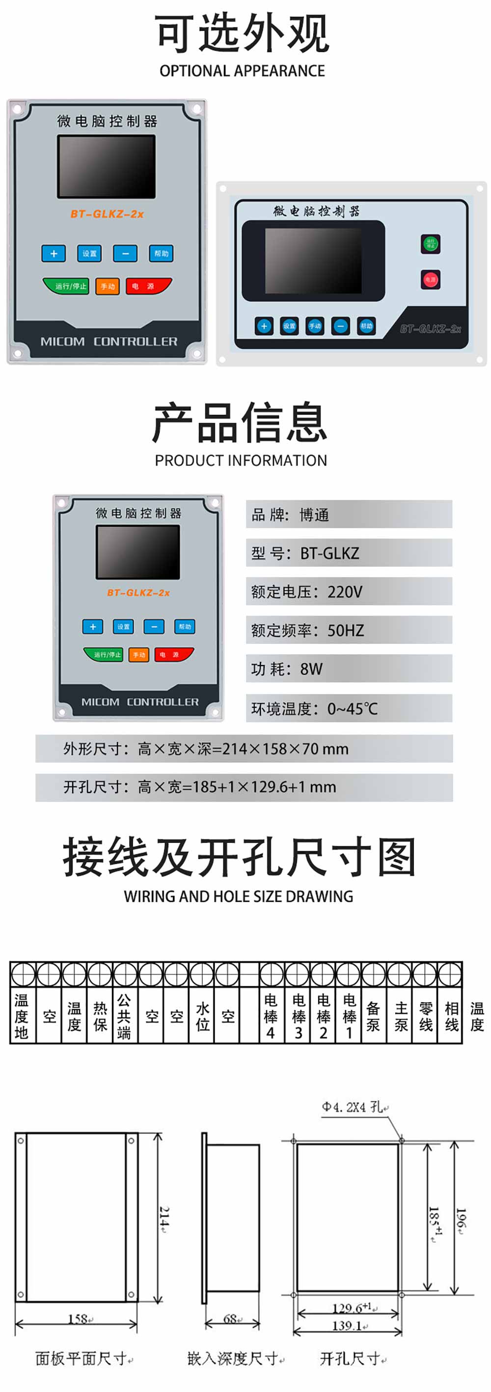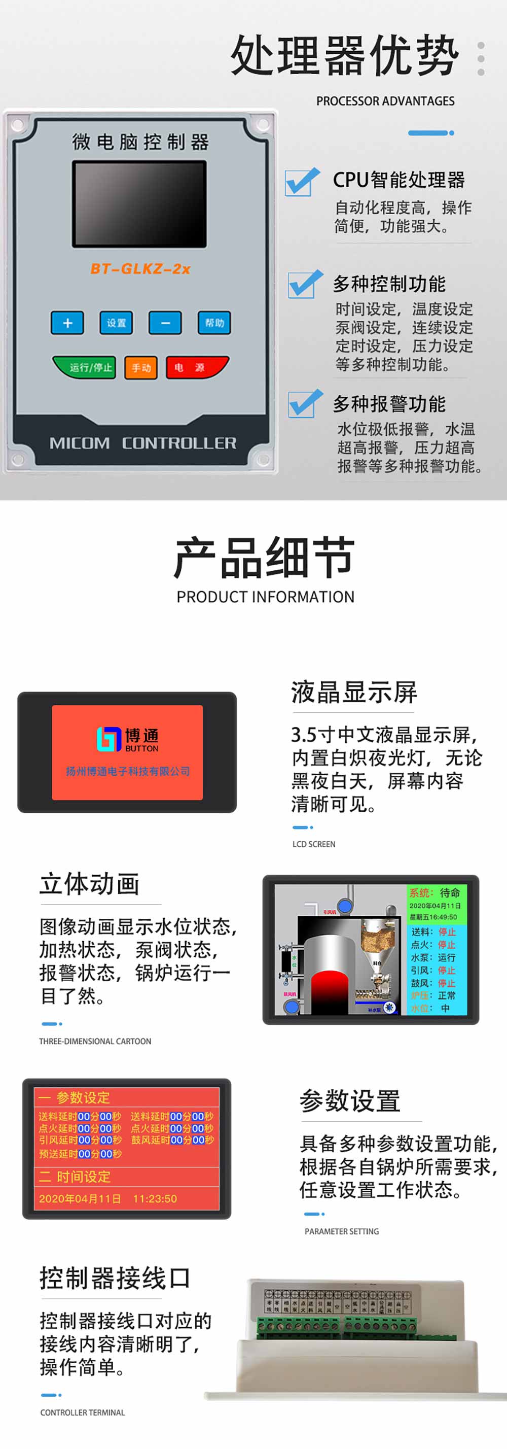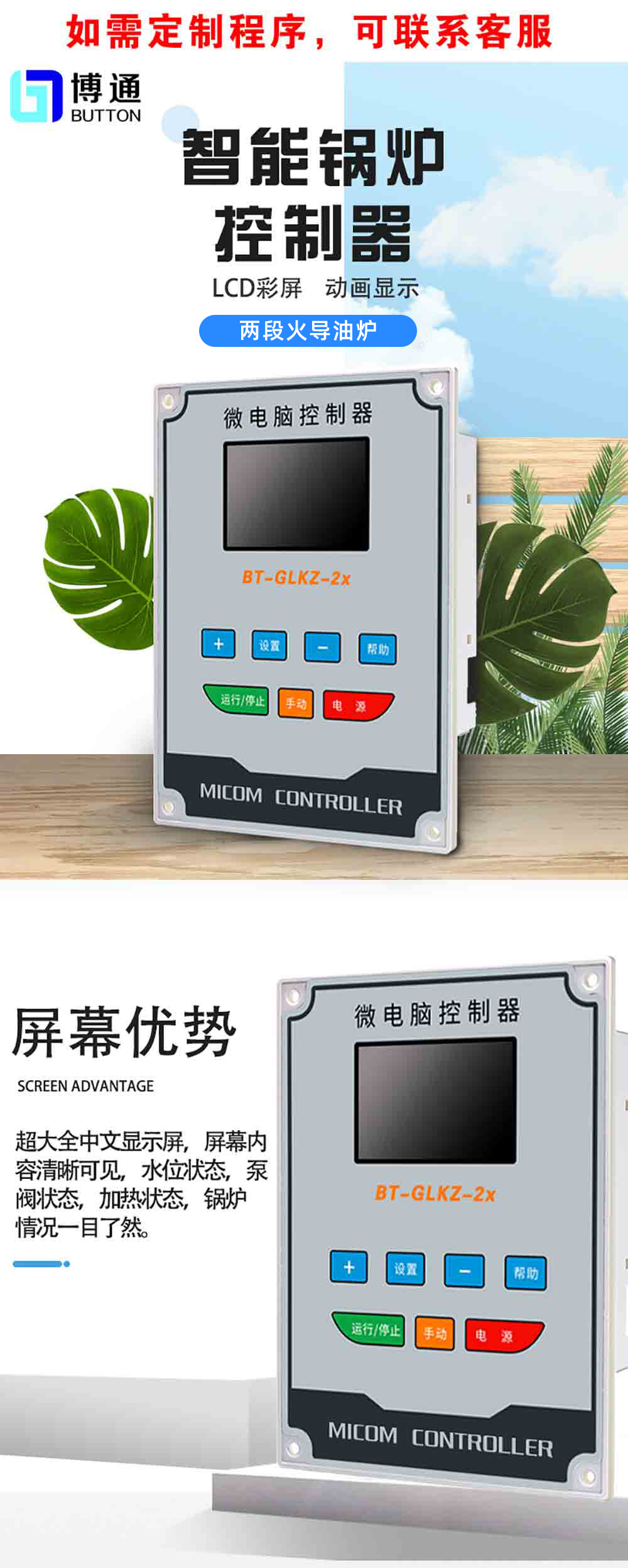 商品名称:3.5寸LCD屏竖版两段火导油炉锅炉控制器