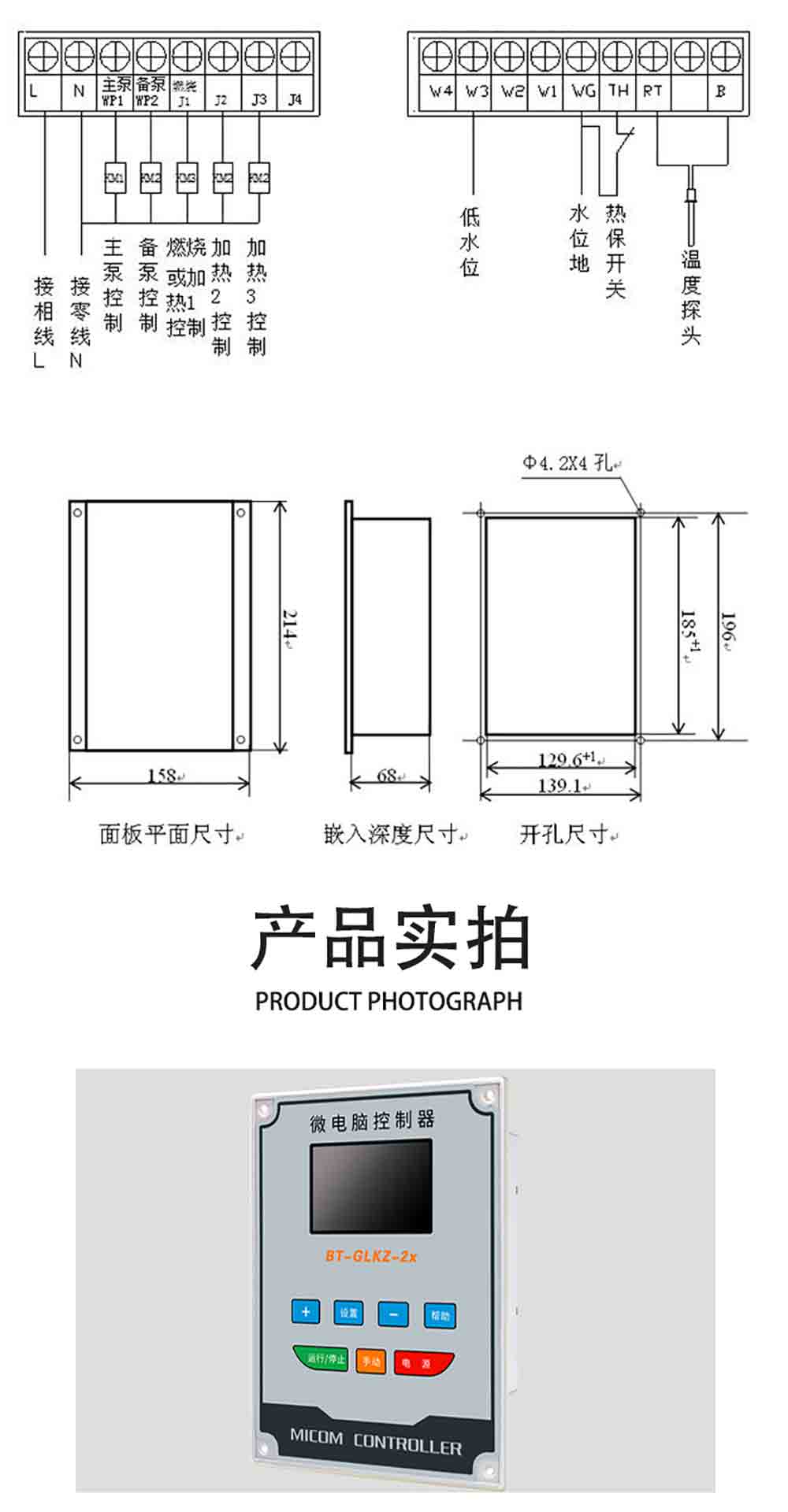 商品名称:3.5寸LCD两段火蒸汽锅炉控制器竖版
